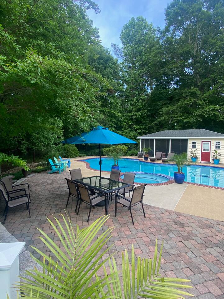 ✨ Shady Oak Farm – Year-Round Resort Retreat Escape to this spacious 5BR/6BTH retreat on 32 private acres, perfect for every season. More than just a place to stay, Shady Oak Farm is designed to help you make lasting memories with family and friends. 🌲 Holiday Flare (Nov 1 – Jan 31) From November through January, the property transforms into a holiday wonderland. The home is filled with festive trees and décor, while the rear hot tub and fire pit area sparkle under thousands of dazzling lights. Relax in the NEW 7-person Jacuzzi while enjoying the glow of holiday displays, or gather with loved ones around the fire pit. All the decorating is already done for you — simply arrive and celebrate stress-free. ☀️ Summer Fun (May 1 – Sept 30) In the warmer months, enjoy the large heated saltwater pool with a round shallow section perfect for kids or conversation. Lounge in multiple private seating areas, float on rafts, or retreat to the cedar-finished pool house with bathroom, refrigerator, and screened porch featuring a 65-inch TV. 🏡 Year-Round Amenities • NEW Hot Tub: Seven seats, 95 massage jets, LED lights & Bluetooth. Fresh mineral water for each guest. • Theatre Room: 85-inch screen, surround sound, raised leather recliners. • Game Room & Bar: Ping pong, poker, and a custom bar for entertaining. • Comfy Bedrooms: Five spacious rooms (4 kings, 1 queen) with large TVs and soft linens. Four have ensuite bathrooms; the fifth shares a hallway bath. • Stocked Kitchen: Coffee makers, Blendtec blender, toaster oven, bakeware, cookware, and pantry basics. Opens to a screened porch with views of the pool and woods. • Family-Friendly: Board games, children’s toys, Pack ’n Play crib upon request. • Outdoor Fun: Fire pit with supplied wood, swing set, picnic tables, cornhole, grassy play areas, and a small pond (bring your own fishing gear). 🚗 Property Highlights • 32 private acres with oak trees, trails, and scenic views. • Ample parking for trailers, large trucks, and multiple vehicles. 📍 Nearby Attractions • 5 min – Pavilion at Weatherly Waterfront (weddings & events) • 5 min – King George, VA (shops, restaurants, Super Walmart with beer & wine) • 10 min – Cobb Island (famous Maryland blue crabs) • 10 min – La Plata (boutiques, restaurants, coffee shops) • 15 min – Budds Creek & MD International Raceway • 20 min – Wicomico Shores Golf Course (public) • 25 min – Historic Leonardtown (bars, wineries, breweries, restaurants) • 45 min – MGM National Harbor & Casino • 50 min – Old Town Alexandria, VA (quaint shops & dining) • 1 hr – Washington, D.C. 💫 Make Lifetime Memories Whether you’re celebrating under holiday lights or splashing in the summer pool, Shady Oak Farm is the perfect backdrop for your getaway. Spacious, private, and filled with thoughtful amenities, it’s a retreat designed for comfort, relaxation, and fun in every season.