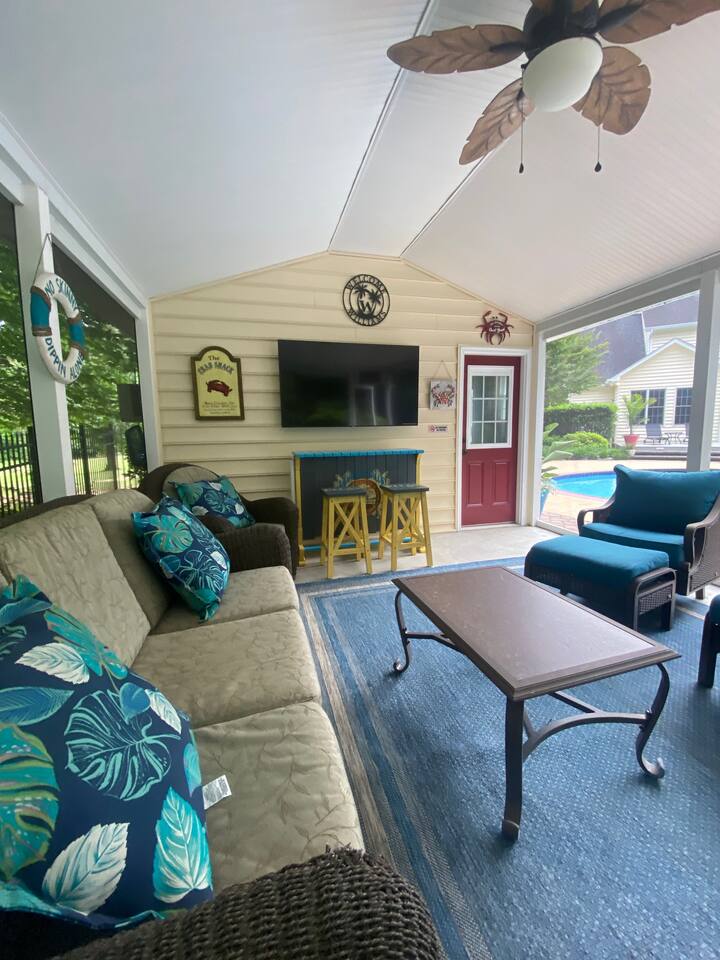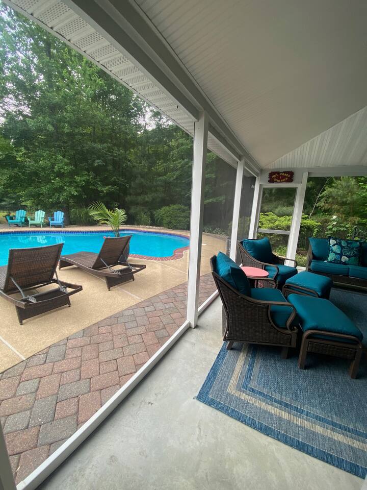 We provide one pool/hot tub towel per guest per stay. Laundry pods, dryer sheets, paper towels, dish soap, trash bags, and a fresh sponge are included, along with complimentary coffee, tea, creamer, and sweeteners (K-cups & a large coffee pot available). Firewood is supplied for the outdoor fire pit, and backyard lights are on a timer to create a cozy evening atmosphere. Guests may fish in the small pond—please bring your own pole. No parties and no smoking inside or near the house; a smoking area with ashtray is by the fire pit. Parking is on the side only (circle drive for unloading; do not block garage doors as farm hand parks equipment in there ). We do have a farm hand who helps us maintain property and is on the property at times. Located 5 min from The Pavilion at Weatherly and 15 min from Budds Creek Raceway/MIR, with trailer parking available on request.